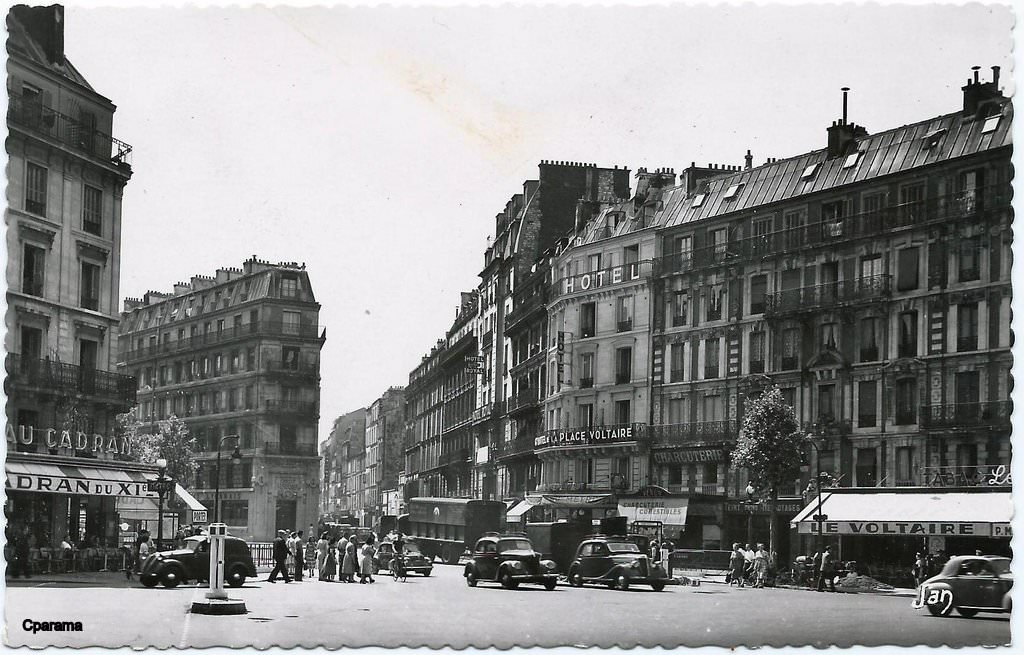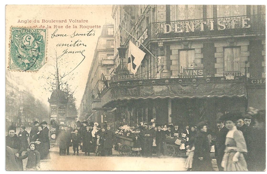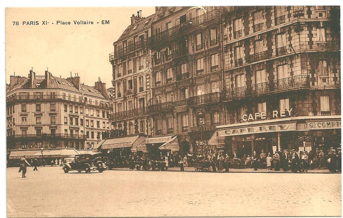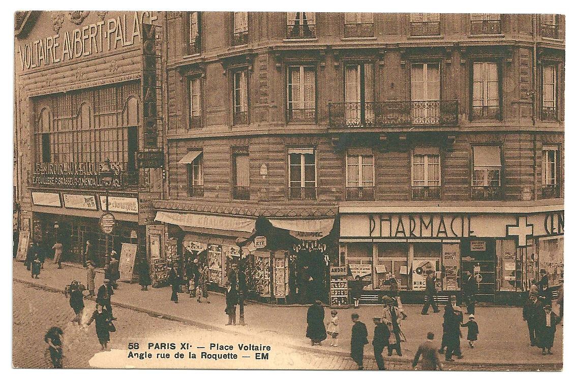 à l’angle de la Place Voltaire et de la rue de La Roquette.